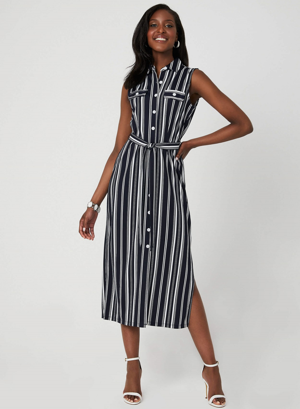 A loose-fitting shirt dress is the easiest outfit option for day or night. It’s already styled for you with button details or a belted waist, and pairs effortlessly with a light denim jacket. When choosing the perfect staple dress, look for breathable fabrics—like linen—to keep cool on hot summer days. Wear it casually with strappy sandals or polish up the look with classic pumps.