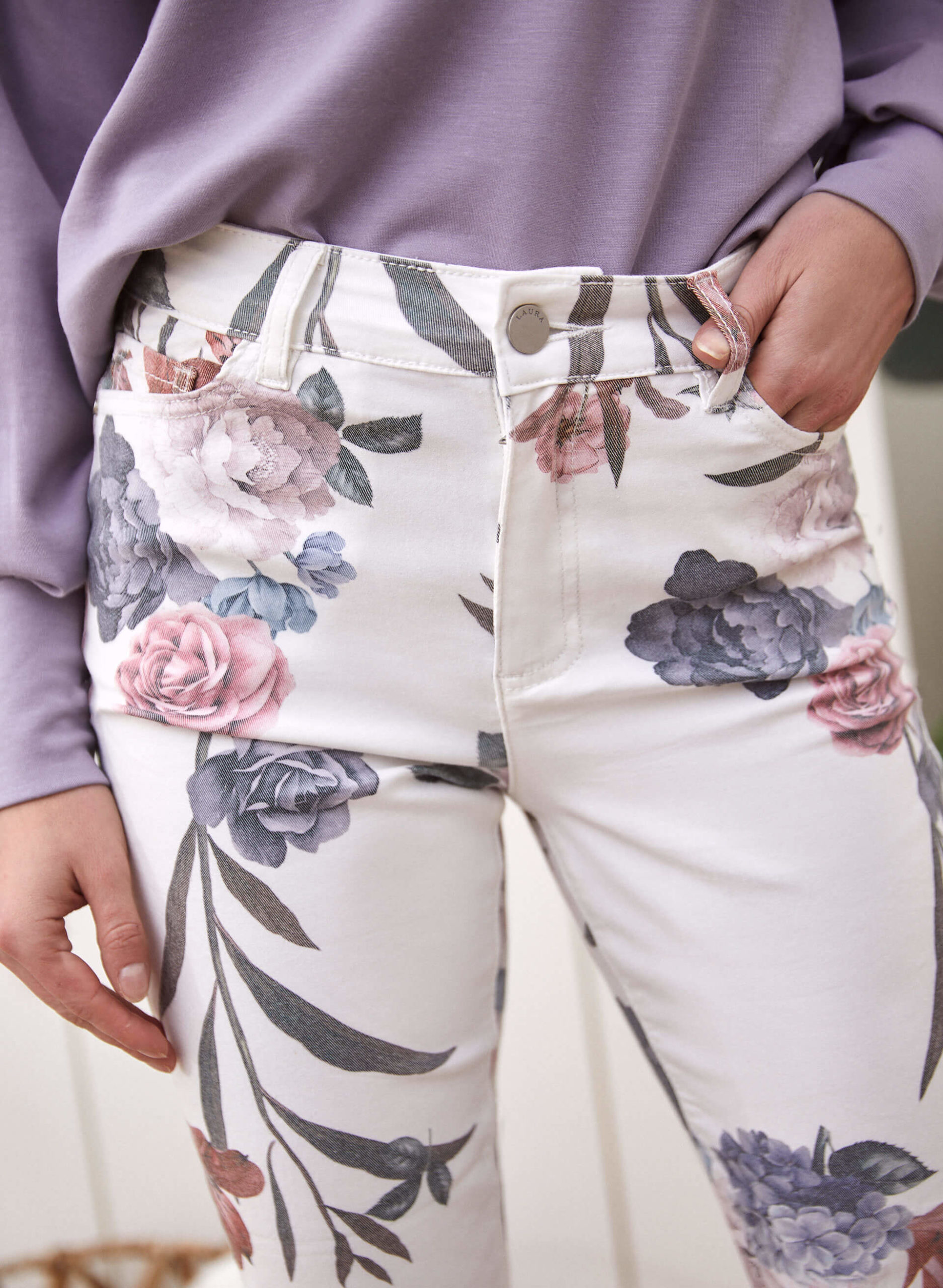 Like clematis climbing a trellis, flowers pop up where you least expect them. Applied to jeans, they immediately add a floral touch to a classic casual look. For a comfy yet trendy outfit, pair them with a top in a key colour of the new season.