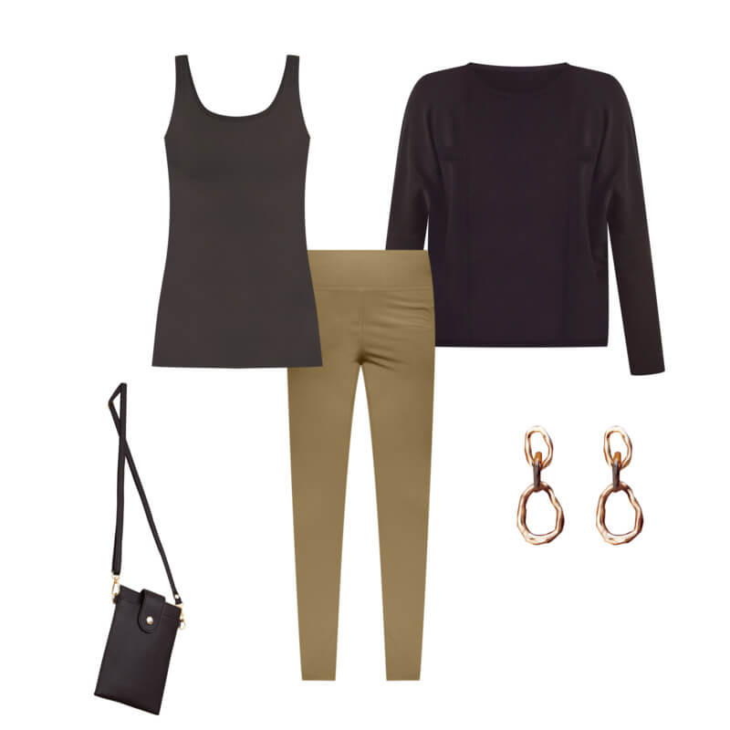 C’est samedi et vous prenez la direction du marché afin d’y dénicher le nécessaire pour cuisiner vos repas du weekend. Optez pour un haut en tricot et un confortable legging. Ajoutez une paire de boucles d’oreilles pendantes pour un soupçon d’éclat et complétez le tout avec des bottes à talons plats. Maquillez-vous légèrement et glissez votre téléphone dans un sac bandoulière ultra pratique.