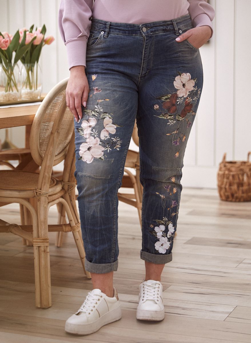 Telles des clématites escaladant un treillis, les fleurs surgissent là où on ne les attend pas. Appliquées sur un jean, elles fleurissent sur-le-champ un look décontracté. Pour une tenue tendance confo, complétez avec un haut aux couleurs de la nouvelle saison.